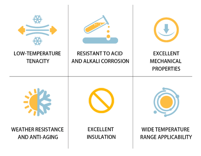 Product Features: Low-temperature resistance (-60°C to +85°C), UV resistance/weather resistance, chemical resistance