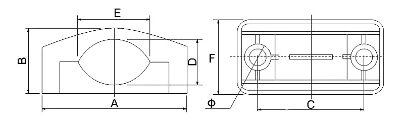 | Item No. | A | B | C | D | E | F | Φ | Cable Diameter |
